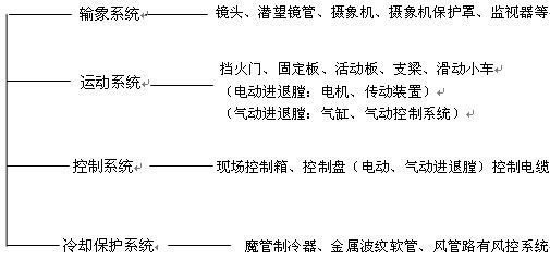 電動及氣動進退膛電視監(jiān)視裝置,在冷卻風出現(xiàn)斷風故障時,能自動將潛望鏡管退出爐膛,以免燒壞輸象系統(tǒng),操作人員也可在控制室內通過控制盤上的操作按鈕或電腦控制潛望鏡管的進退爐膛。